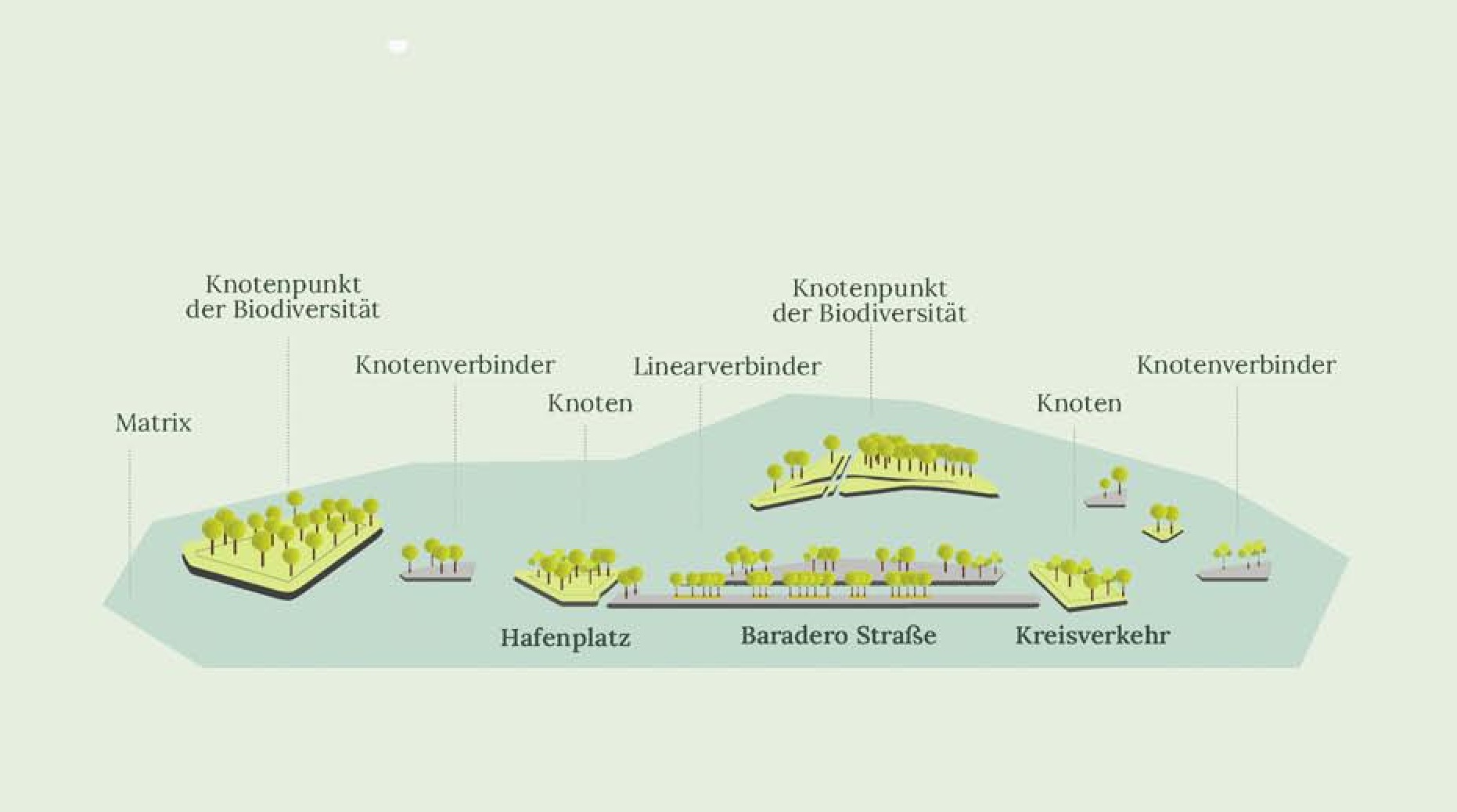 Im Rahmen eines Direktauftrags von Puerto La Plata umfasste das Projekt eine Diagnose und einen Gestaltungsvorschlag für die Plaza del Puerto sowie eine der Hauptstraßen des Hafens. In Zusammenarbeit mit der Landschaftsarchitektin Fernanda Santacá wurde ein Konzept entwickelt, das die lokale Biodiversität und biologische Wechselwirkungen durch gezielte Landschaftsgestaltung fördert. Das Projekt stärkt zwei zentrale Knotenpunkte – den Kreisverkehr und den Hafenplatz – und fungiert als lineares Bindeglied innerhalb der ökologischen Matrix des Gebiets.