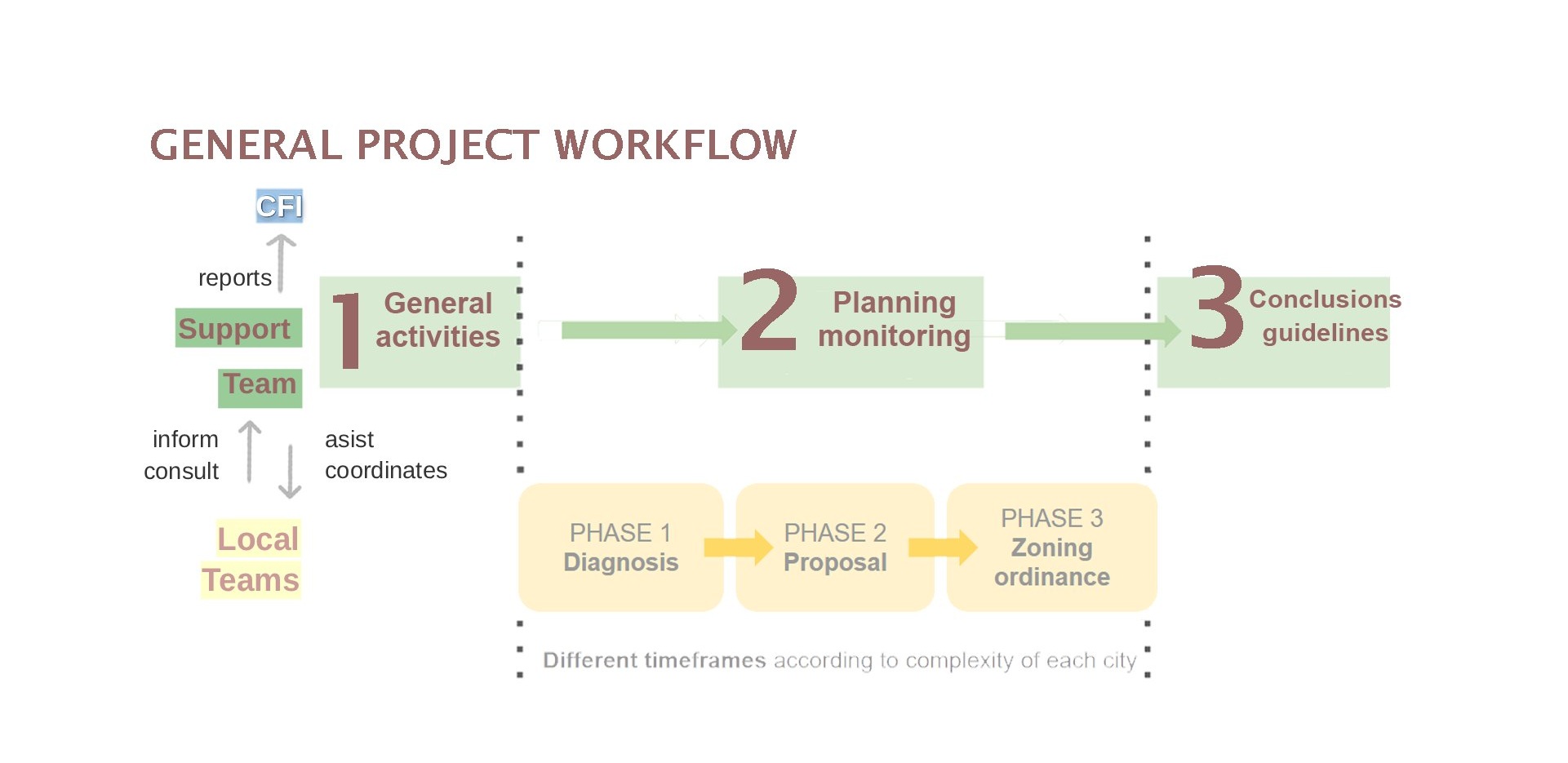 - Work plans according to complexity: 10 high · 15 medium · 25 low complexity municipalities
