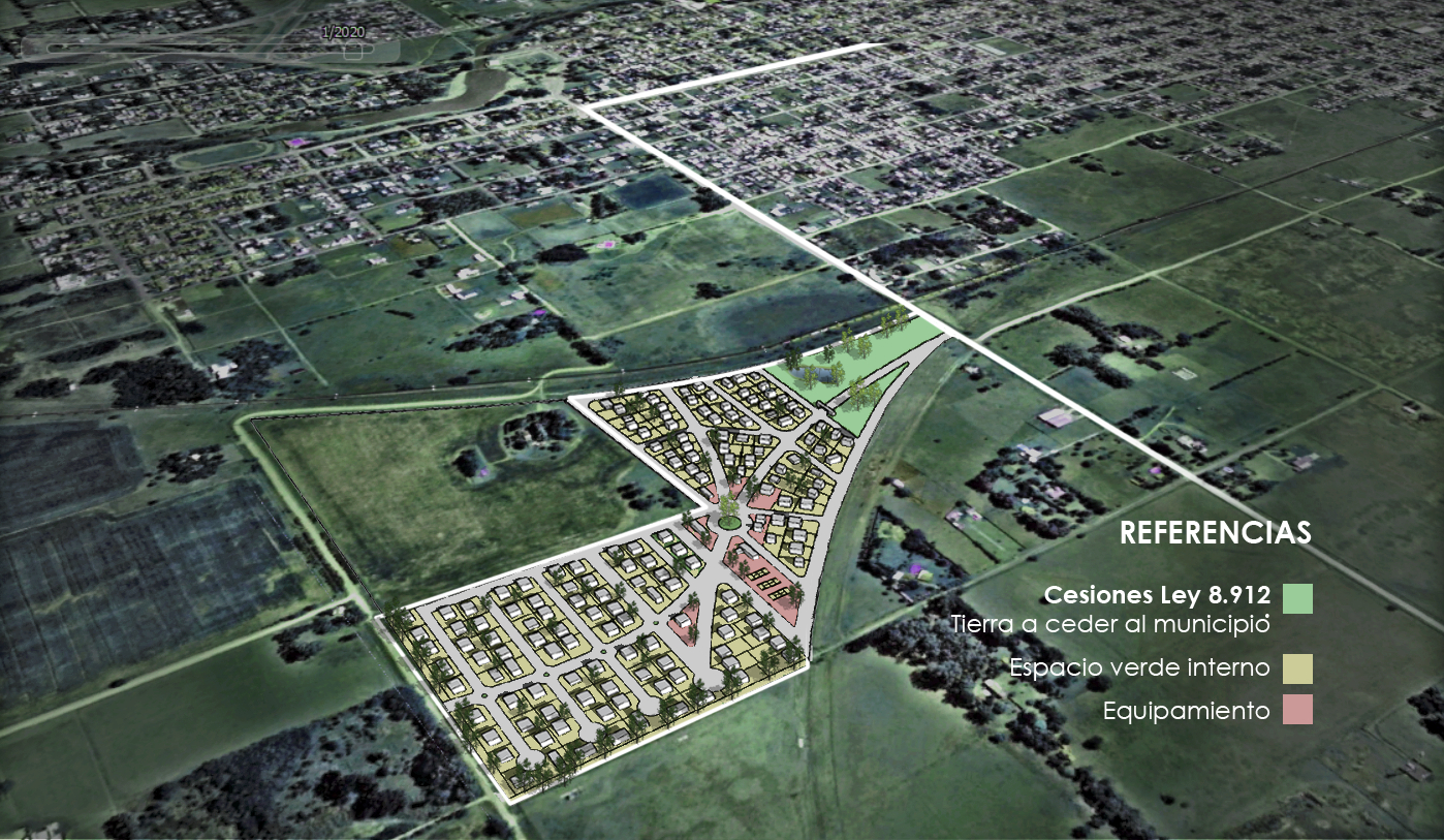 The “San Benito” project, located in Azul District (Buenos Aires Province), is developed within the city’s Complementary Area and includes 176 plots for single-family housing. Its primary function is residential, complemented by sports and recreational facilities. The design features a 1.7-hectare central park that preserves the Pampas landscape, with leisure areas strategically arranged. Part of the land will be transferred to the municipality as public green space, supporting environmental quality and community integration.
