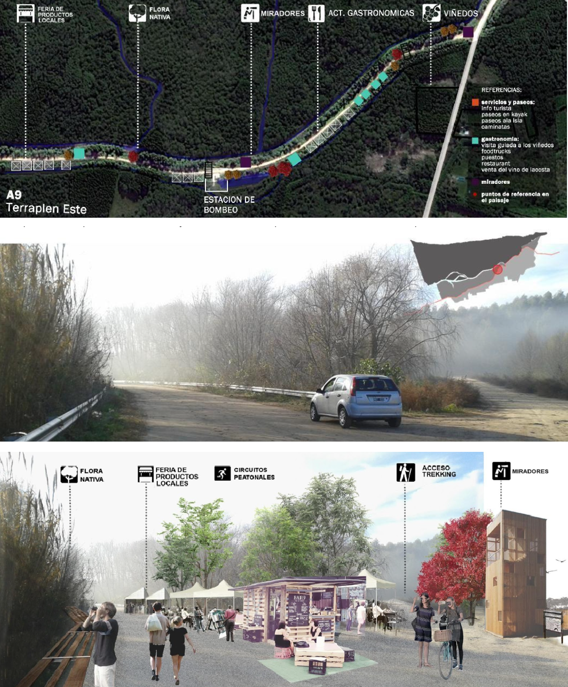 Final project of the Design Studio of the Master’s Program in Landscape, Environment and City (2015–2016 cohort). The work operates at the intersection of architecture, urbanism, and landscape architecture, incorporating perspectives from cultural anthropology and socio-environmental thought to develop an interdisciplinary and integrative proposal. The study area focuses on the coastal zone of Ensenada and Berisso, along the Río de la Plata, 60 km from Buenos Aires.