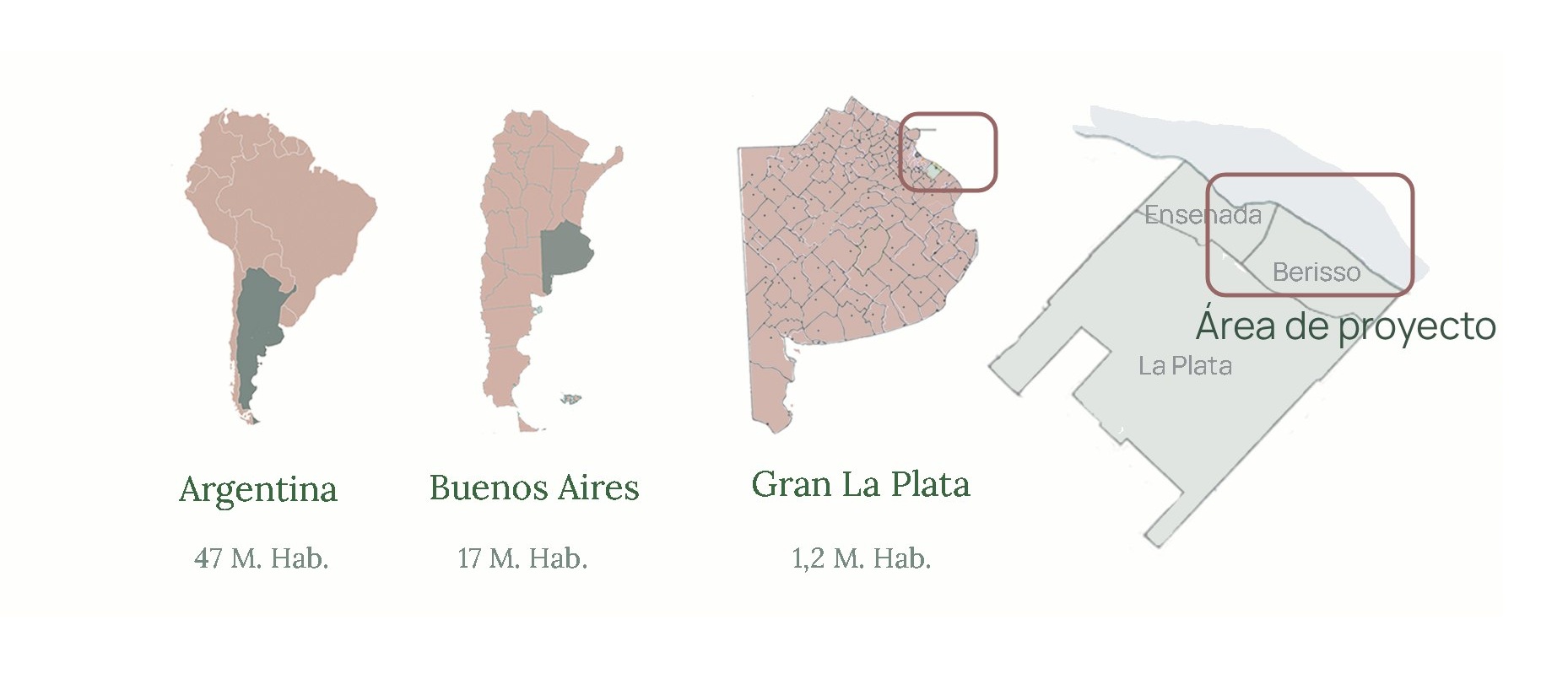 Trabajo final del Taller de Proyectos de la Maestría en Paisaje, Medioambiente y Ciudad (cohorte 2015–2016). El proyecto se sitúa en la intersección entre arquitectura, urbanismo y arquitectura del paisaje, incorporando además enfoques de la antropología cultural y el pensamiento socioambiental para desarrollar una propuesta interdisciplinaria e integradora. El área de estudio corresponde a la franja costera de Ensenada y Berisso, sobre el Río de La Plata, a 60 km de Buenos Aires.